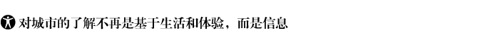 ![]() 城市越冒險,生活其中的人們對城市就會越陌生??梢姷氖聦嵤?,人們對城市的了解不再是基于生活和體驗,而是信息。此前延續(xù)多年的城市生活規(guī)律和節(jié)奏被互聯(lián)網(wǎng)打破了,互聯(lián)網(wǎng)把城市的每一部分都終端化,城市的每一個具有生命特征的組織不再受生理和情理的連接,而是信息的連接。一方面,信息成為連接人與人、人與城市、城市與城市的單一工具,信息把城市圈成了地域以外的另一種空間,只是,信息的流動性并沒有協(xié)助人了解城市,反倒是增加了越來越多的陌生。 另一方面,陌生又完成了城市開放意象的表達,這也是一座城市為什么能吸引外來者旅游、造訪、定居的重要原因。信息的獨立和集合讓人、讓城市的局部在封閉系統(tǒng)之外,又像互聯(lián)網(wǎng)時代的物流一樣多樣化、復合化。 |