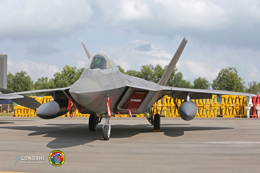 ??? 新加坡航空展上,美國(guó)空軍F-22第五代戰(zhàn)斗機(jī)十分搶眼。(圖片鳴謝:鼎盛軍事 龍石)