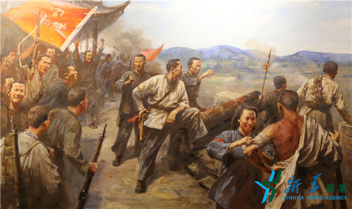 1927年11月14日,黃麻起義爆發,圖為鄂東軍保衛黃安油畫