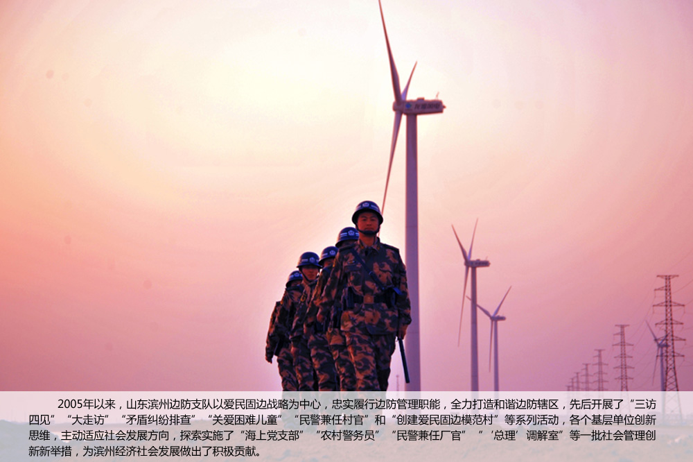 ????自2005年以來,山東邊防總隊濱州邊防支隊以“愛民固邊戰略”為中心,忠實履行邊防管理職能,把“訪民情、知民意、排民憂、解民難”作為具體的愛民行動,打造和諧邊防轄區。