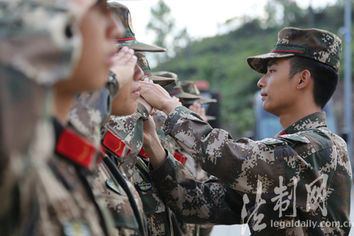 ????帶訓骨干介紹,除了背包繩,班長們還利用撲克牌、水壺、輪胎等多種“就地取材”的輔助訓練物品,全面提高新兵的等軍事素養,為新兵們趕赴禁毒一線打好基礎。(陳奕武 張偉民)