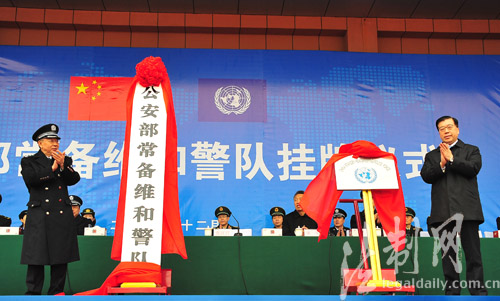 ????經國務院和中央軍委批準,12月22日,公安部常備維和警隊在山東省東營市掛牌成立。公安部部長助理王儉出席儀式并為警隊揭牌、授旗。