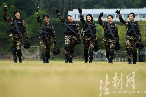 ????“干媽,我太想你了!”“隊長,我要給你個擁抱!”“我也要來個熊抱!”在深圳銀湖山下的邊防警營,記者現(xiàn)場看到,陳偉紅所到之處皆有掌聲,戰(zhàn)士們熱情的上前打招呼、話家常、送祝福。特別是在訓練場,一支六人組成的“霸王花”小分隊格外搶眼,手握九五式鋼槍,腳穿新式防爆靴,個個全副武裝、英姿颯爽,走起路來虎虎生風;細一掂量,僅身上的防彈背心、頭盔、鋼槍就有三十多斤重,均為目前的先進裝備。看到陳隊長到來,霸王花們又變成了小姑娘,紛紛涌向老大姐,拉家常、話思念。“我們都是大姐的徒弟!”女中尉小劉說。作戰(zhàn)訓練科賴紹坤科長介紹,該支隊作為全國公安邊防部隊的機動力量,常年擔負多項緝私、緝毒、救援、處突任務;而該支隊平日里,這些女干部主要分布在各機關(guān)業(yè)務科室,但是只要任務需要,她們都將奔赴第一現(xiàn)場;所以平時的訓練同樣嚴格;“女干部和男干部一樣,無論在哪個崗位,每個季度都會組織進行體能、技能考核!”(廖鍵)