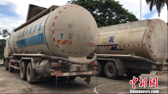 圖為兩輛改裝的水泥罐車。 杜金凱 攝