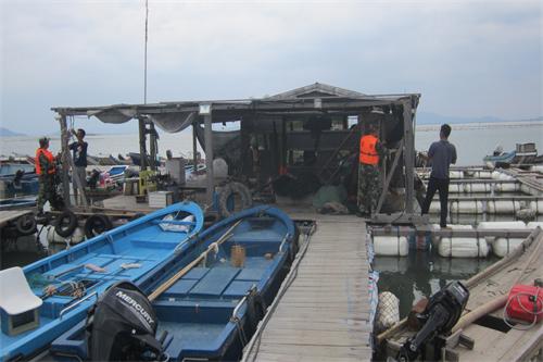 圖為東山前樓邊防所官兵幫助群眾加固漁排