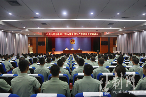 ????9月6日上午, 2017年度入警大學生廣東培訓點開訓動員大會在廣東邊防總隊訓練基地舉行。來自廣東、廣西、福建、海警學院等13個總隊級單位的300余名入警大學生和優秀大學生士兵提干學員參加了大會。
