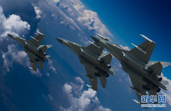 中國(guó)空軍殲-16戰(zhàn)機(jī)進(jìn)行飛行訓(xùn)練(資料照片)。新華社發(fā)(楊軍 攝)