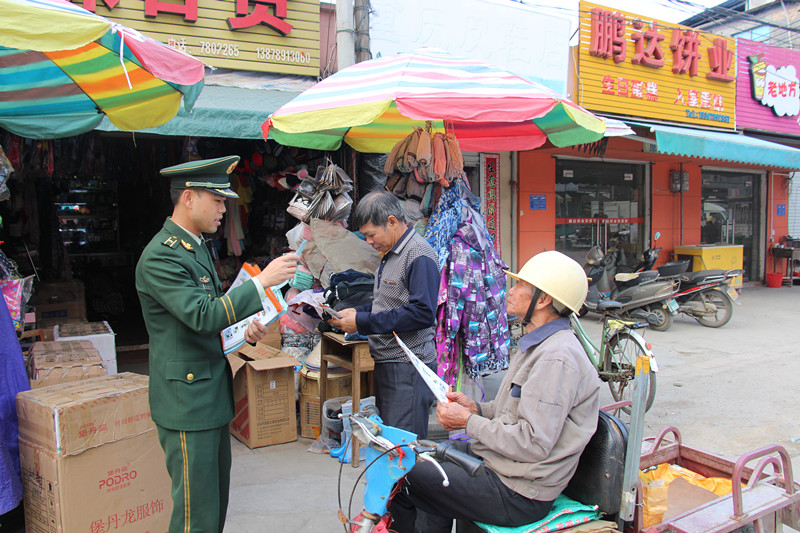廣西北海沙崗邊防派出所官兵深入轄區開展防“盜搶騙”宣傳活動