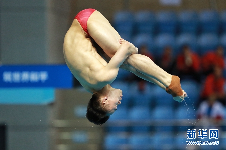 10月25日,謝思埸在比賽中。當(dāng)日,在武漢舉行的第七屆世界軍人運(yùn)動(dòng)會(huì)跳水項(xiàng)目男子3米跳板決賽中,中國(guó)選手謝思埸以556.75分的成績(jī)奪得冠軍,中國(guó)選手王宗源以502.90分的成績(jī)獲亞軍。新華社記者 劉續(xù) 攝