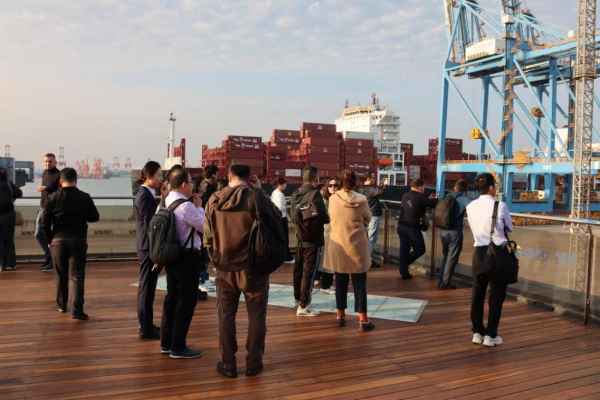 参加2024年上海合作组织银行联合体研讨会的成员行代表实地调研山东港口集团青岛港