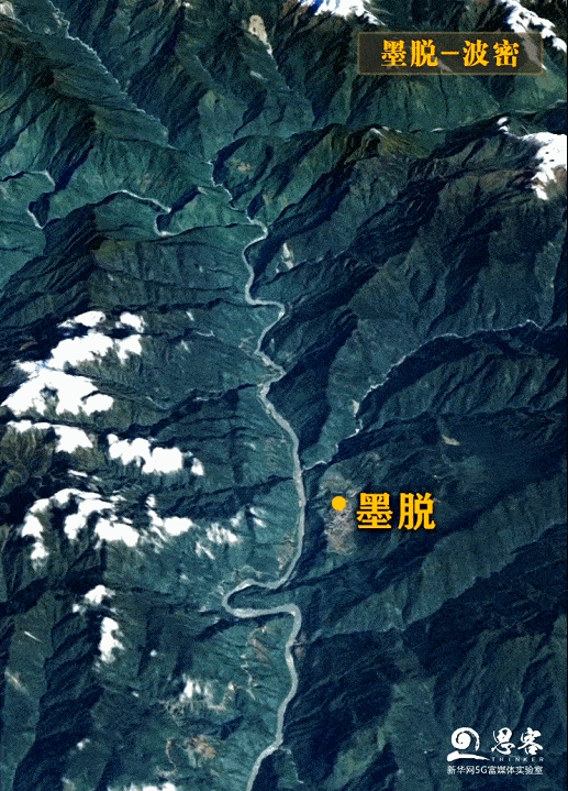 ▲從墨脫至波密縣扎木鎮衛星三維實景。衛星數據來源:高分六號