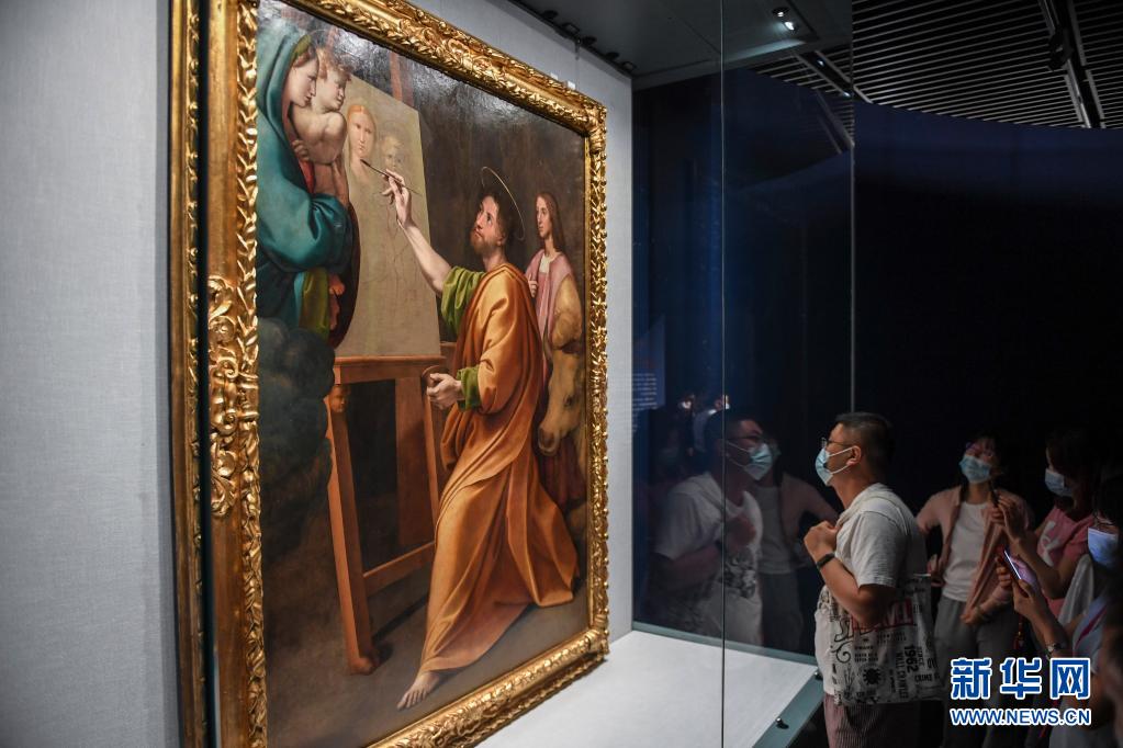 5月3日,觀眾在欣賞展出作品《圣路加在拉斐爾面前繪畫圣母子像》。