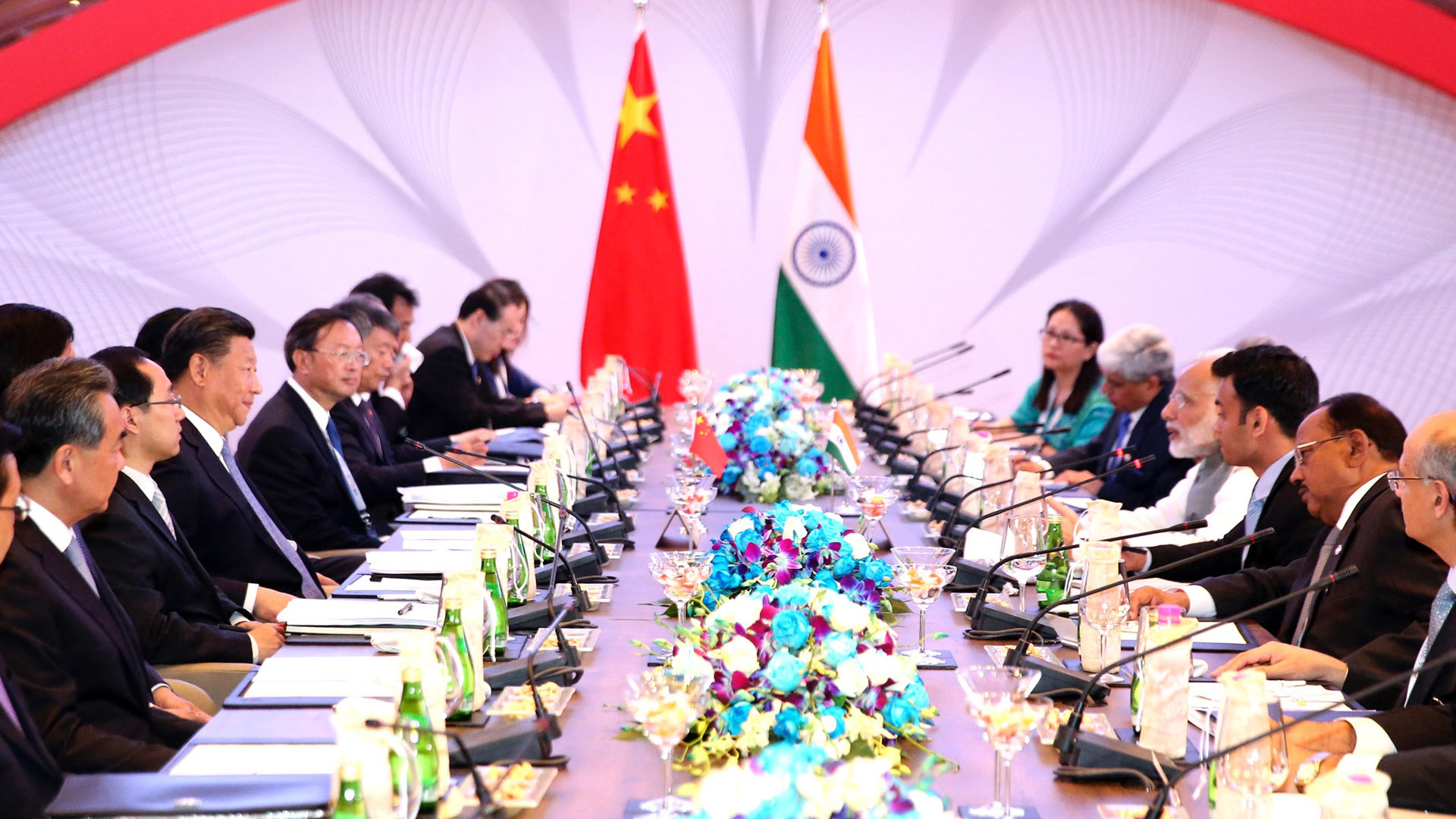 10月15日,國家主席習(xí)近平在印度果阿會見印度總理莫迪。新華社記者 謝環(huán)馳 攝