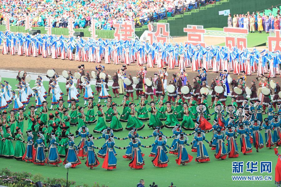 8月8日,內(nèi)蒙古自治區(qū)成立70周年慶祝大會在呼和塔拉內(nèi)蒙古少數(shù)民族群眾文化體育運(yùn)動中心舉行。圖為群眾行進(jìn)表演。新華網(wǎng)記者 陳杰 攝