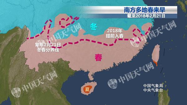 南方氣溫相對平穩,不過整體仍呈波動上升,目前看,截至2月21日,江南南部、華南北部、四川盆地部分地區已經成功入春,湖南中南部、江西中部都比常年同期提前見到了春姑娘。