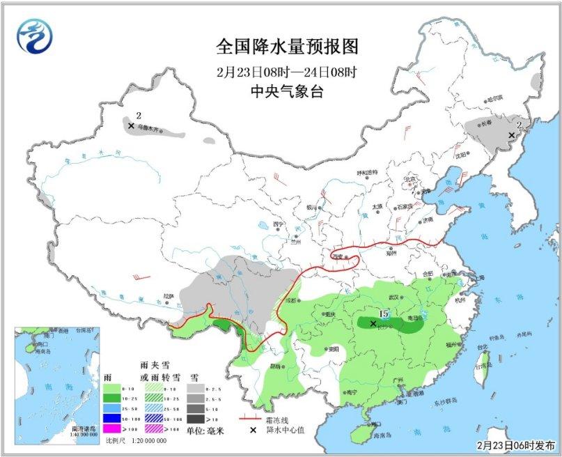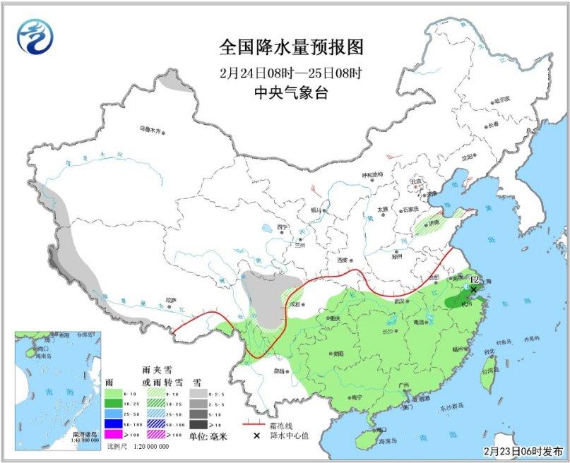23日夜間至24日,西南地區東部、江漢南部、江淮南部、江南、華南等地將有一次小到中雨的降水過程。
