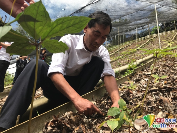 肯乃在重樓種植地向記者介紹種植情況。中國青年網記者 張瑞宇攝
