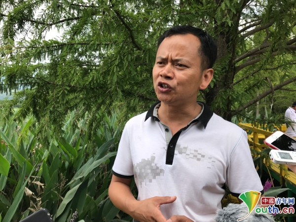 李潤榮向記者介紹茈碧湖環境治理和幫扶貧困戶情況。中國青年網記者 張瑞宇攝