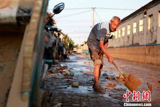 8月24日,洪水退去后濰坊壽光政府組織人員清理街道。濰坊市已啟動(dòng)《重大自然災(zāi)害衛(wèi)生應(yīng)急預(yù)案》最高級別響應(yīng)。據(jù)統(tǒng)計(jì),濰坊市已修復(fù)縣鄉(xiāng)路路基、路面79.14公里,局部損毀橋涵11座;搶通縣鄉(xiāng)公路22條、143公里。 梁犇 攝