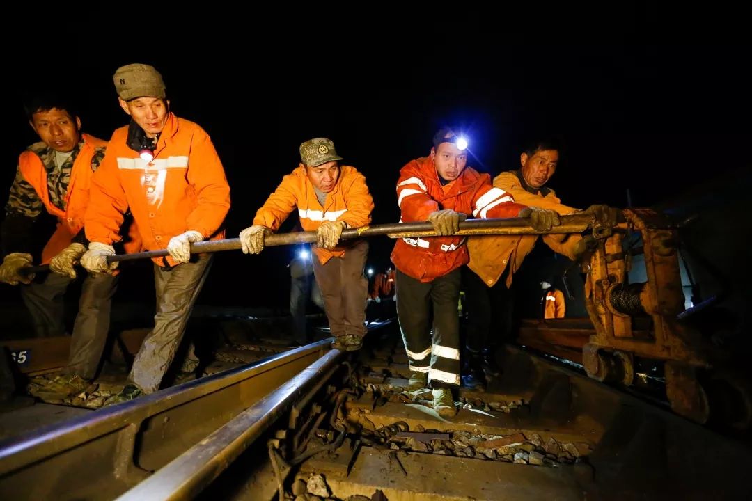 2019-01-25,江西南昌。凌晨兩點,中國鐵路南昌局集團有限公司南昌工務段的線路工們準備檢修線路,護航春運安全。作者:德權(quán)