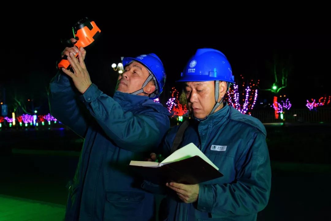 2019-01-28,山東濟南濟陽區(qū)。春節(jié)節(jié)前,電力員工對供電線路進行夜巡測溫,及時掌握線路設備的運行狀況,為全區(qū)居民春節(jié)期間可靠用電做好準備。作者:CBT