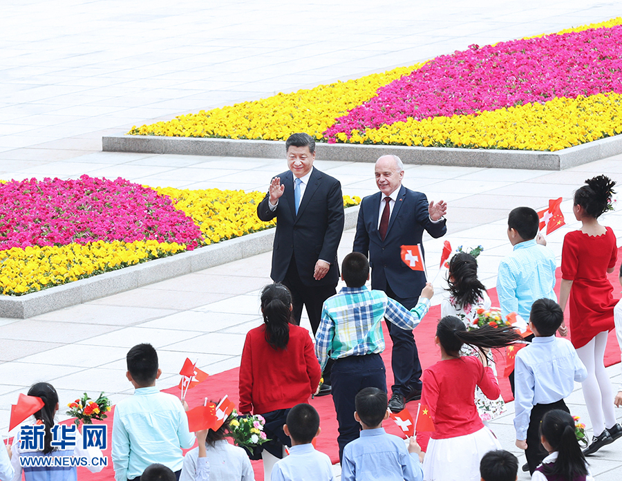 4月29日,國家主席習近平在北京人民大會堂同瑞士聯(lián)邦主席毛雷爾舉行會談。這是會談前,習近平在人民大會堂東門外廣場為毛雷爾舉行歡迎儀式。 新華社記者 謝環(huán)馳 攝