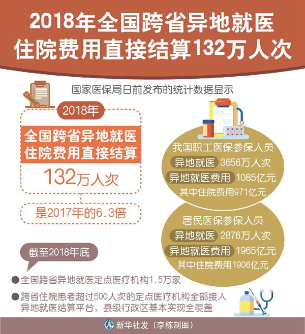 數(shù)據(jù)顯示,2018年,我國職工醫(yī)保參保人員異地就醫(yī)3656萬人次,異地就醫(yī)費用1085億元,其中住院費用971億元;居民醫(yī)保參保人員異地就醫(yī)2876萬人次,異地就醫(yī)費用1965億元,其中住院費用1906億元。跨省異地就醫(yī)直接結(jié)算政策的進一步落實和完善,將為流動人口和隨遷老人等群體提供更大便利。
