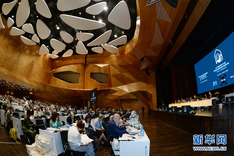這是7月5日在阿塞拜疆巴庫拍攝的世界遺產大會現場。 新華社發(巴巴耶夫 攝)