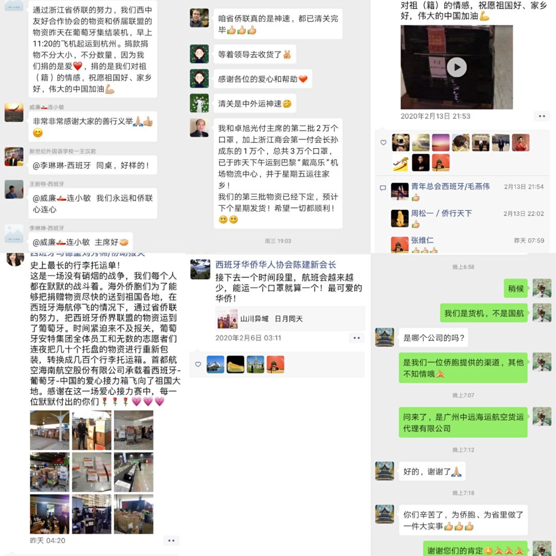 2月1日晚,浙江省僑界名媛匯微信群里的一則信息引起了大家的注意。“歐洲的朋友們,如果因為飛機停飛的原因,可以把捐災的貨品送到荷蘭阿姆斯特丹或者西班牙,我們有貨機包機帶回來!免費!”群里瞬間沸騰,求助信息紛至沓來。省僑聯黨組書記、主席連小敏捕捉到這一信息,隨即高度重視,求證確認后,第一時間研究討論,展開部署。