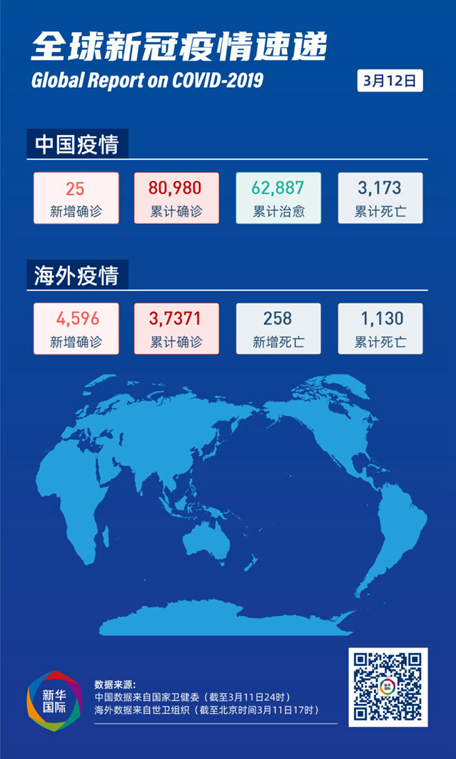 意大利全國范圍實施“封城”;法國、西班牙確診病例突破兩千;伊朗啟動國家動員計劃……世衛組織報告顯示,截至北京時間11日17時,中國以外有113個國家和地區報告確診病例37371例,死亡1130例。