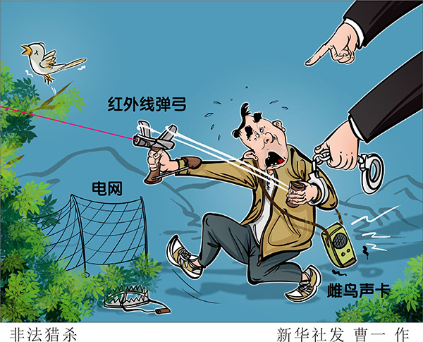 一個彈弓配上精準的紅外線瞄準儀,保證“百發百中”;一張聲卡匯集數十種雌鳥聲,2000米外能遙控指揮;精心設下的捕獵夾,等著野生動物來“斷腿”……嚴寒過后,萬物復蘇的春天悄然來到。然而,對于野生動物們來說,等待它們的除了和風細雨,還有一些人精心設下的“天羅地網”。