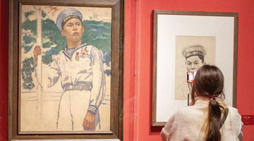 3月30日,人们在俄罗斯莫斯科达尔文博物馆参观中国绘画展。