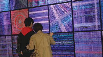 4月19日,观众在香港文化博物馆展览现场体验互动装置。新华社记者 李钢 摄