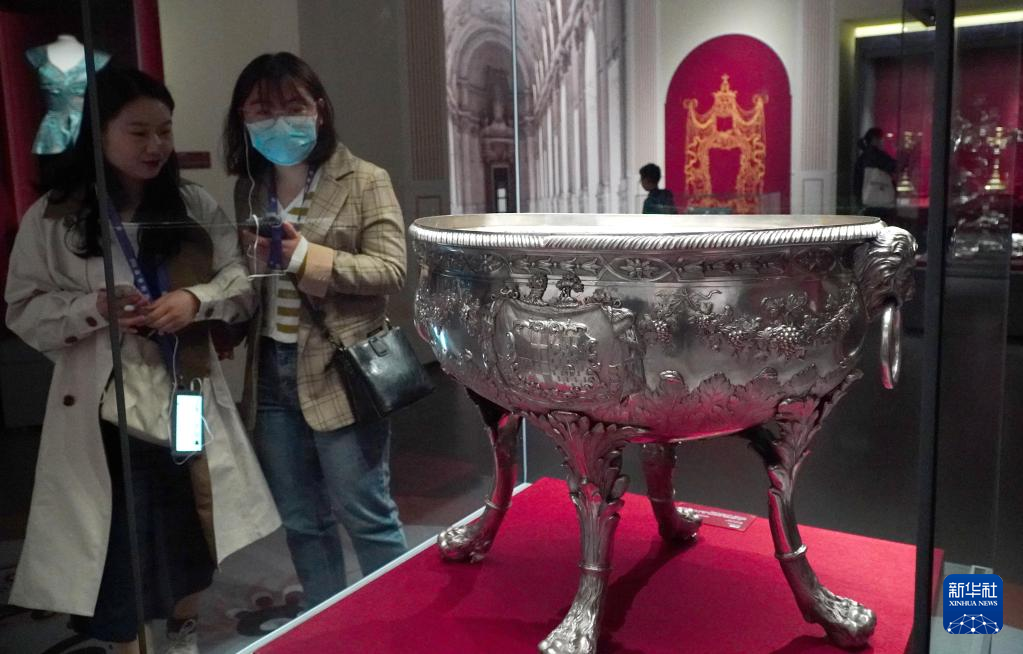 4月29日,在位于山东省济南市的山东博物馆,参观者在英国V&A博物馆藏吉尔伯特精品展上观看展品。