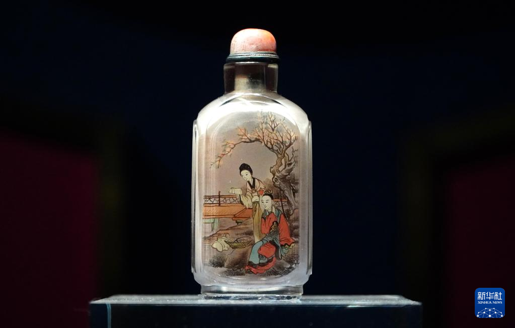在山东博物馆举办的英国V&A博物馆藏吉尔伯特精品展上,展出的山东博物馆收藏清代鼻烟壶精品(4月29日摄)。
