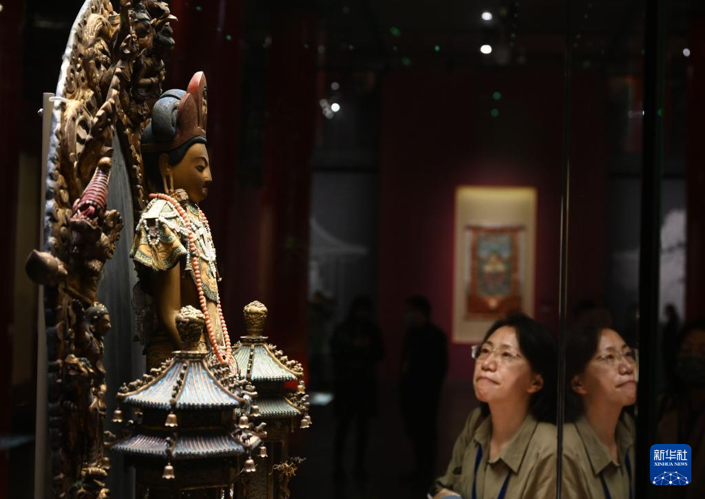 这是4月28日在北京故宫博物院拍摄的“祥开万象——故宫与西藏文物联展”展览现场。