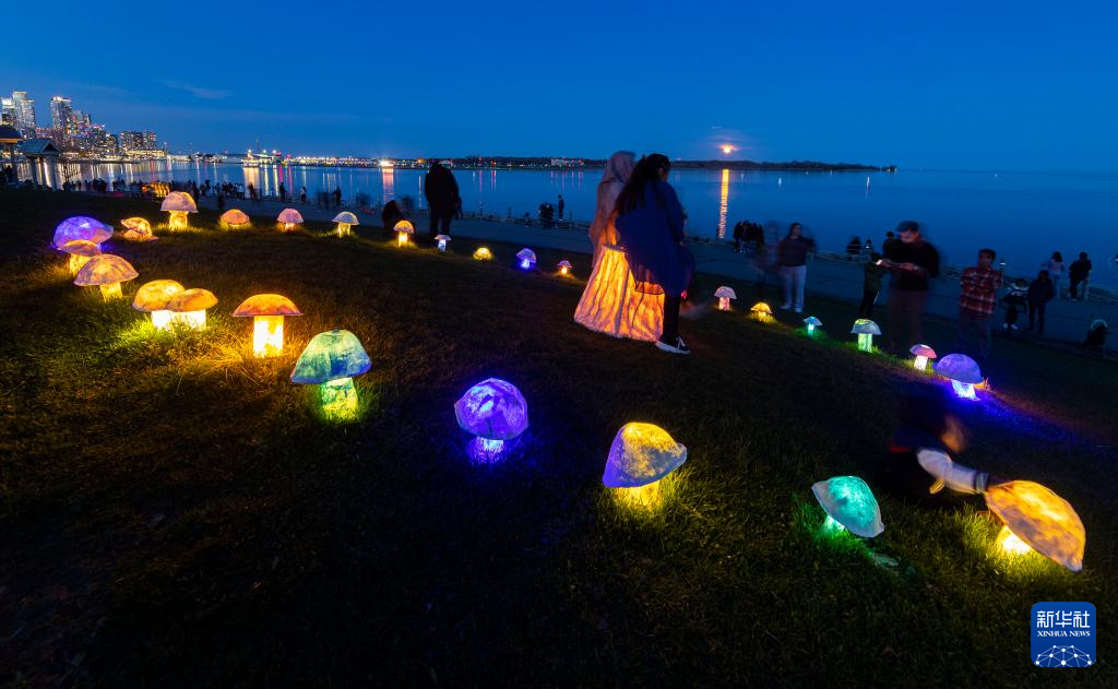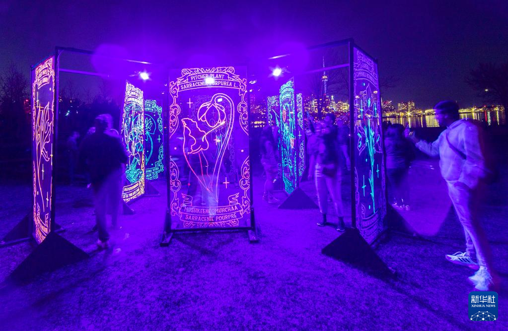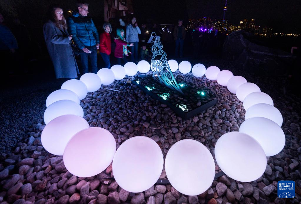5月5日,人们在加拿大多伦多举办的艺术灯光秀上参观。新华社发(邹峥摄)