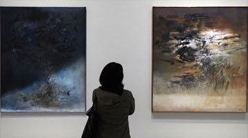 5月9日,参观者在展览现场观赏油画作品。