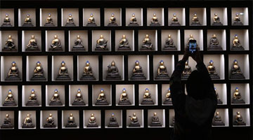 5月9日,观众在展览现场观赏雕塑作品。