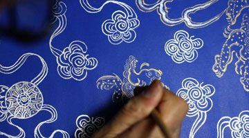 5月15日,在长沙市天心区红卫小学,学生在景泰蓝掐丝珐琅画课上体验景泰蓝掐丝珐琅画制作。