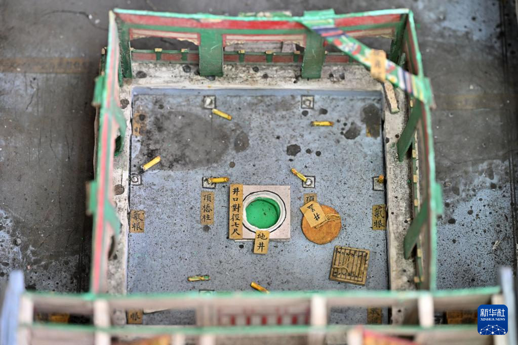 这是修复中的圆明园同乐园建筑群样式雷烫样文物部件(5月16日摄)。
