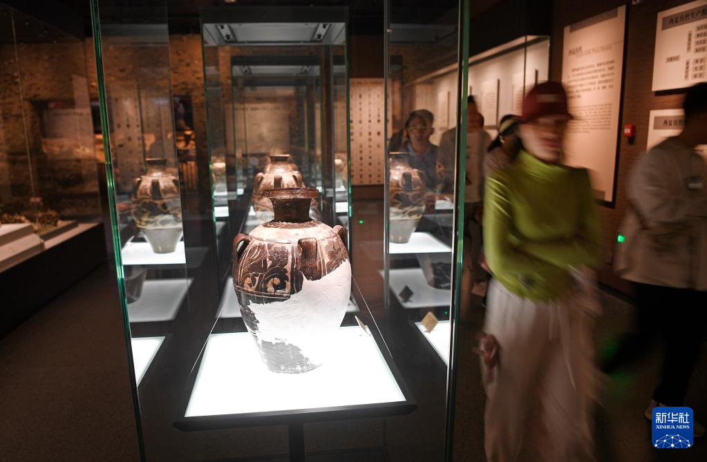 5月18日,游客在西夏博物馆欣赏展出的西夏文物。