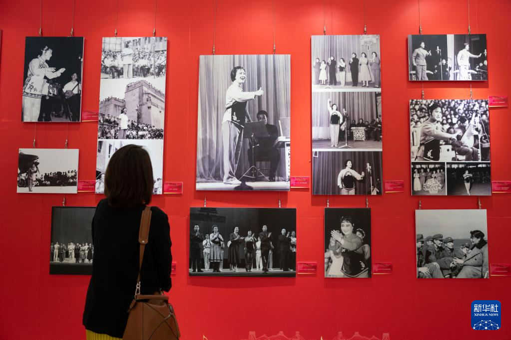 5月19日,老艺术家郭兰英(左二)在第六届中国文联知名老艺术家艺术成就展上观展。