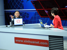 石仲泉在與主持人交談
