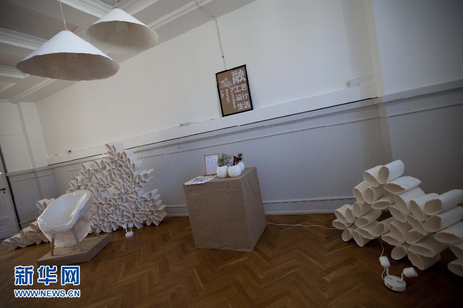 圖為10日所拍攝的“融?工藝設計生活”為主題的中國當代設計展畫面。