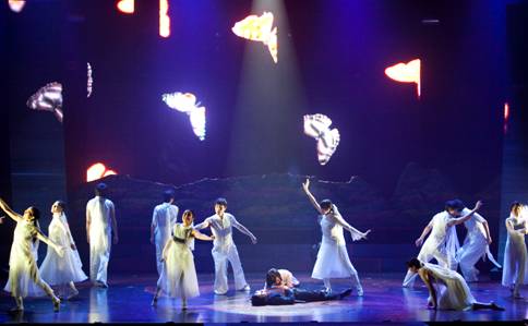 ????此次演出特邀中方以詩(shī)經(jīng)經(jīng)典《關(guān)雎》《摽有梅》開場(chǎng),演員錦衣華服,緩緩起聲,琴音低沉哀鳴高亢交錯(cuò),歌聲余音繞梁之際,韓國(guó)音樂(lè)劇《蝴蝶博士》華麗登場(chǎng)。伴隨著樂(lè)隊(duì)的現(xiàn)場(chǎng)演奏,音樂(lè)劇主角石宙明以大段韓語(yǔ)獨(dú)白震撼全場(chǎng),兩側(cè)屏幕同步顯示中文翻譯。為照顧現(xiàn)場(chǎng)觀眾,韓方演員遇到簡(jiǎn)單詞匯則以普通話來(lái)詮釋劇情,引發(fā)現(xiàn)場(chǎng)觀眾共鳴。兩個(gè)節(jié)目在動(dòng)與靜,內(nèi)斂與奔放中,碰撞出藝術(shù)火花。中韓兩國(guó)藝術(shù)家跨越語(yǔ)言障礙,用不同的藝術(shù)形式表達(dá)了共同的愿望:思考生活,憧憬未來(lái)。