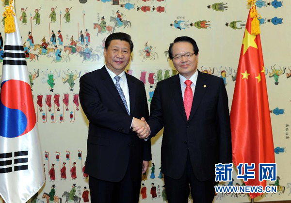 ????習近平表示,中韓關系發展很好,各層次各領域交流活躍。昨天,我同樸槿惠總統進行了富有成果的會談,雙方發表了聯合聲明,明確了新形勢下兩國關系發展的總體方向和重點合作領域。相信在雙方共同努力下,中韓戰略合作伙伴關系一定能夠得到新的更大發展。