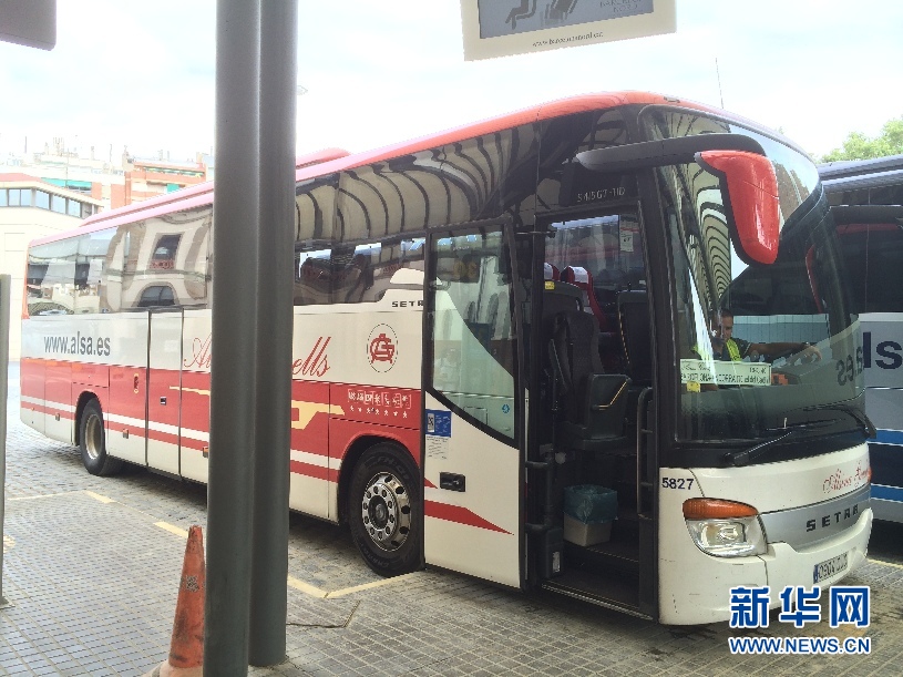 ????停在巴塞羅那Nord長途汽車站(Barcelona Nord Bus Station)里的大巴車,即將開往安道爾首都安道爾城。(周喆 攝)