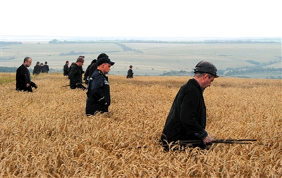 由于遺骸散落范圍達25平方公里,搜尋需要大量的人力。除了救援人員和警察,頓涅茨克的礦工們,也在下班后加入了搜索隊伍?,F(xiàn)場圖片顯示,身穿黑衣頭戴安全帽的礦工們,在一片向日葵地中仔細地搜尋。