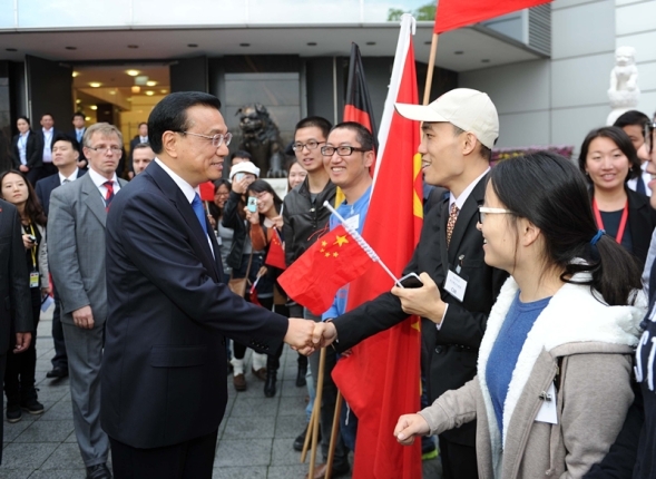 克強(qiáng)總理問了問孩子們的年齡、年級(jí),又跟學(xué)校老師聊起孩子們的學(xué)習(xí)情況,與大家一起合影,鼓勵(lì)孩子們“做中德交往的橋梁”。